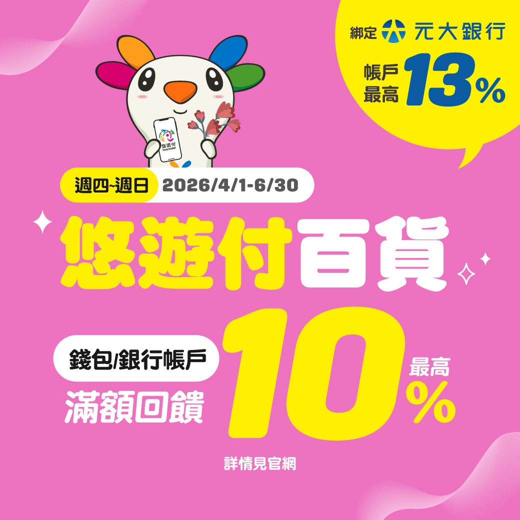 【指定百貨/影城】週四~週日 悠遊付滿額最高回饋11%,週五最高回饋13%