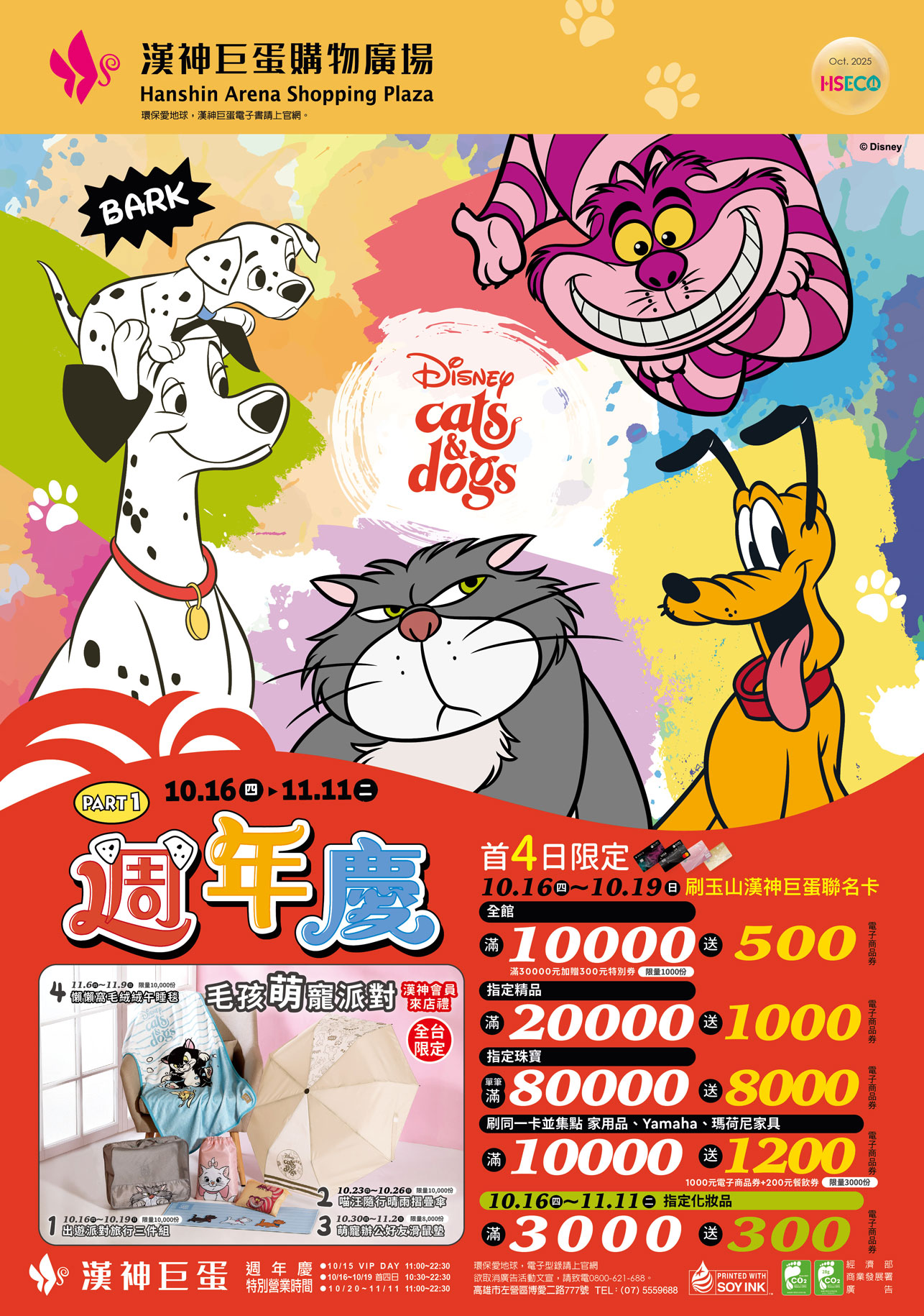 首4日限定 10.16~10.19 刷玉山漢神巨蛋聯名卡 ●全館 滿1000...