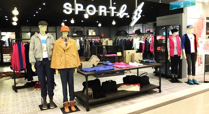 囊括各式SPORT b. 休閒服飾,提供消費族群琳瑯滿目的選擇,專屬於品牌的空間,更讓消費族群享受最佳的購物體驗。