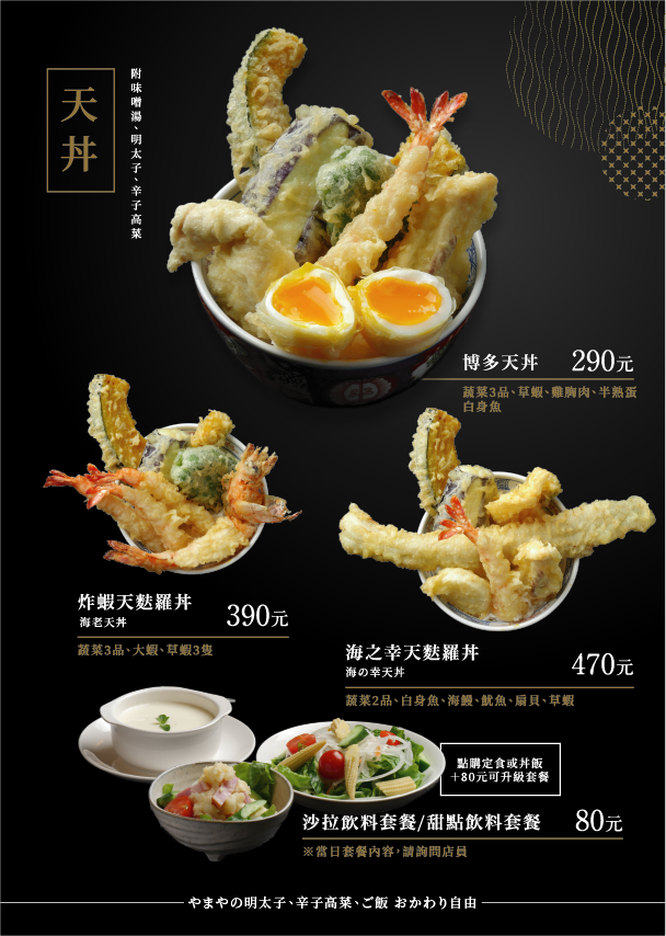 博多天麩羅山海源自於日本九州,特色是提供熱騰騰、現炸酥脆的天婦羅,附上特有的飛魚高湯加上鰹魚之濃厚的醬汁,加上使用新鮮季節感的食材,讓每一口體現脆脆口感和品嚐出食材本身的原有風味,是從味道至外觀都有徹底講究的天婦羅專賣店。 秉持對料理品質的堅持,特地使用九州名物博多織裝潢的店內,還可以享用道地明太子,辛子高菜以及白飯無限量供應。