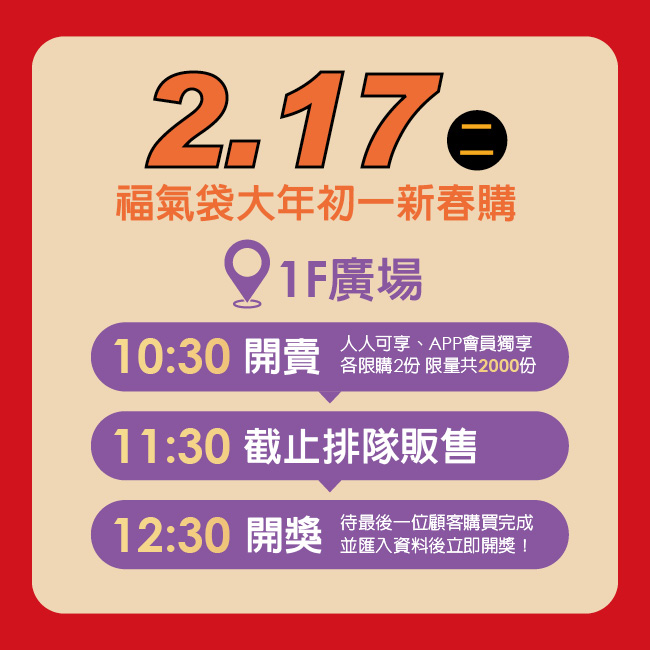 活動時間:2/17(二)大年初一 共限量2000份
