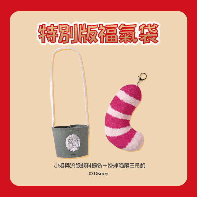 可獲得>>漢神巨蛋禮券100元+福氣袋抽獎券2張+特別版機票抽獎券1張+小姐與流氓飲料提袋+妙妙貓尾巴吊飾