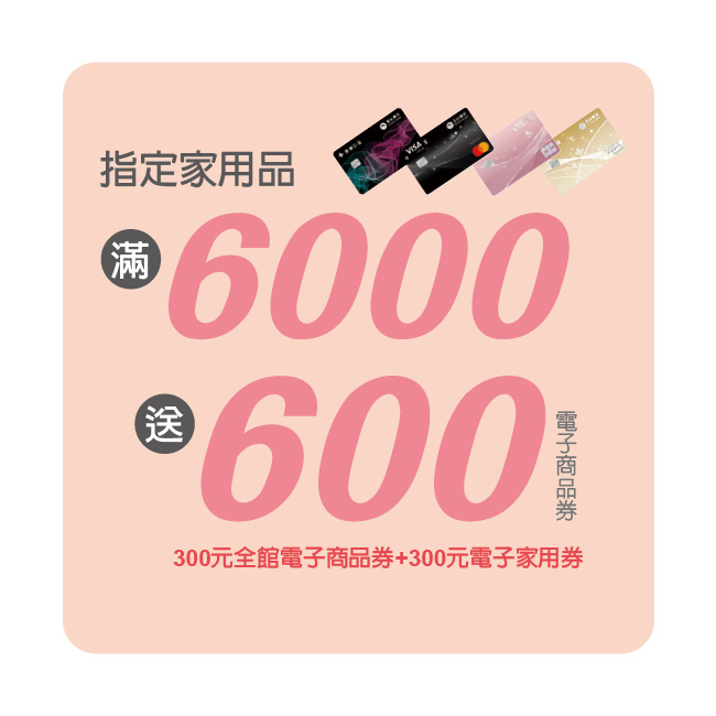 指定家用品 滿6000送600電子商品券