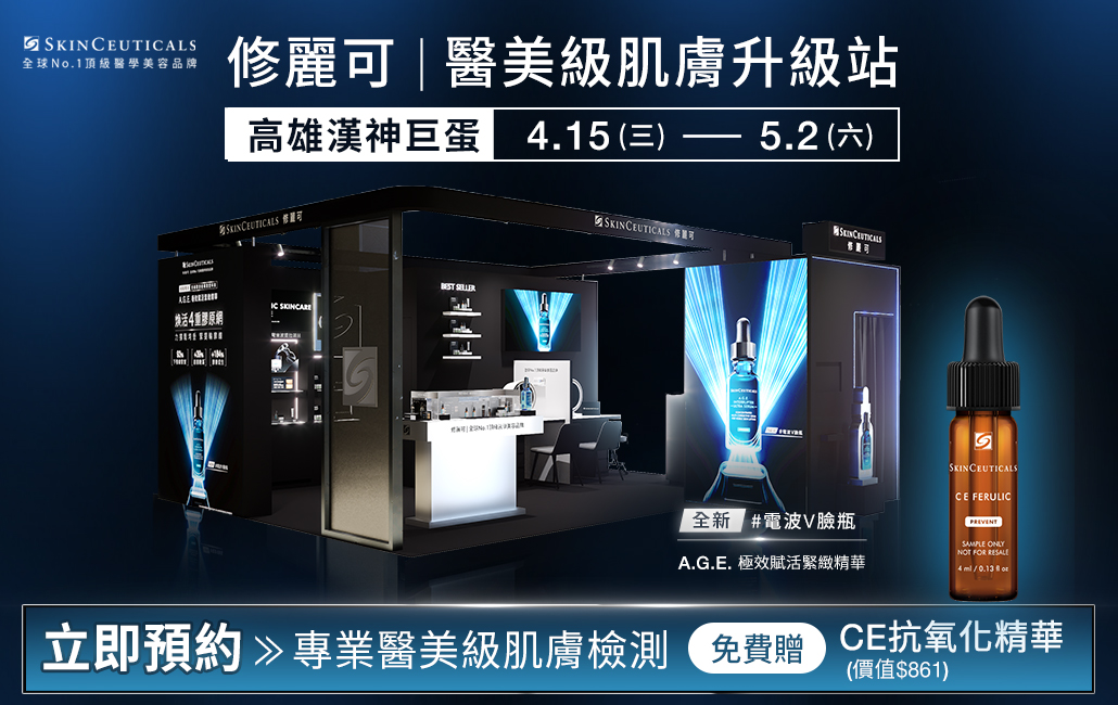 修麗可全球No.1頂級醫學美容品牌,4/15(三)-5/2(六) 快閃高雄漢神巨蛋1樓!我們誠摯邀請您參與「醫美級肌膚升級站」快閃活動,親身感受頂級醫美規格護膚的魅力!