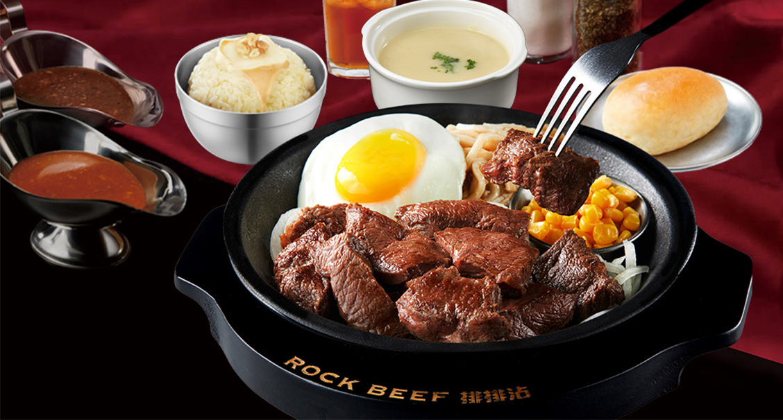 「Rock Beef 排排沾」特製招牌必嚐「洋蔥牛排醬」與黃金比例調製的「黑椒菇菇醬」。餐點依食量與喜好規劃多樣選擇,大份量吃起來格外滿足。人氣必點「爆食雙牛饗宴」,一次享受「搖滾切塊牛排」與「醬燒霜降牛五花」,肉食控絕對不能錯過。