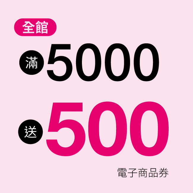 - 全館滿 5000 送 500 電子商品券