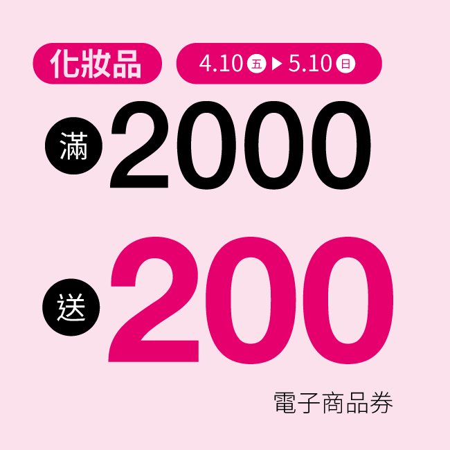 - 化妝品滿 2000 送 200 電子商品券