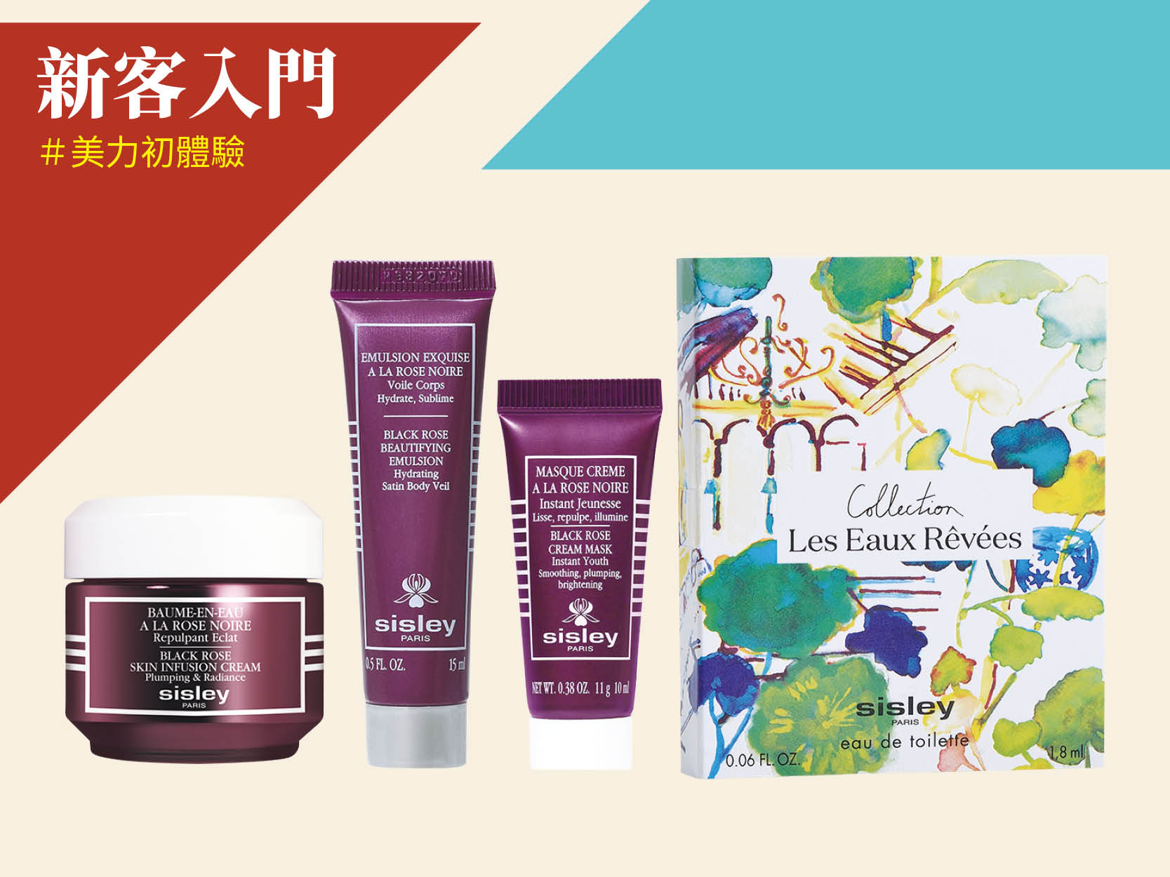 黑玫瑰彈潤水凝霜50ml+水凝身體乳15ml+頂級乳霜抗老面膜10ml+d'Hubert夢之境修伯特香水1.8ml
