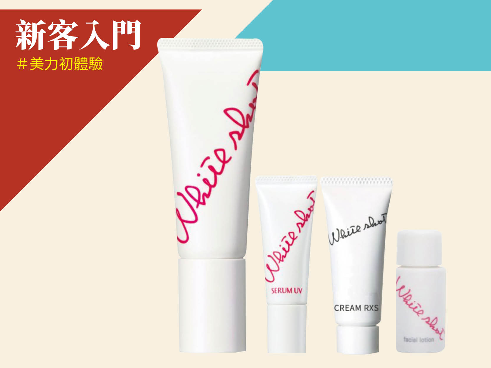 擊速煥白UV防曬精華SPF50+/PA++++ 45g+無瑕淨透化妝水10ml+雙效修護凝乳RXS 8g+UV防曬精華9g
