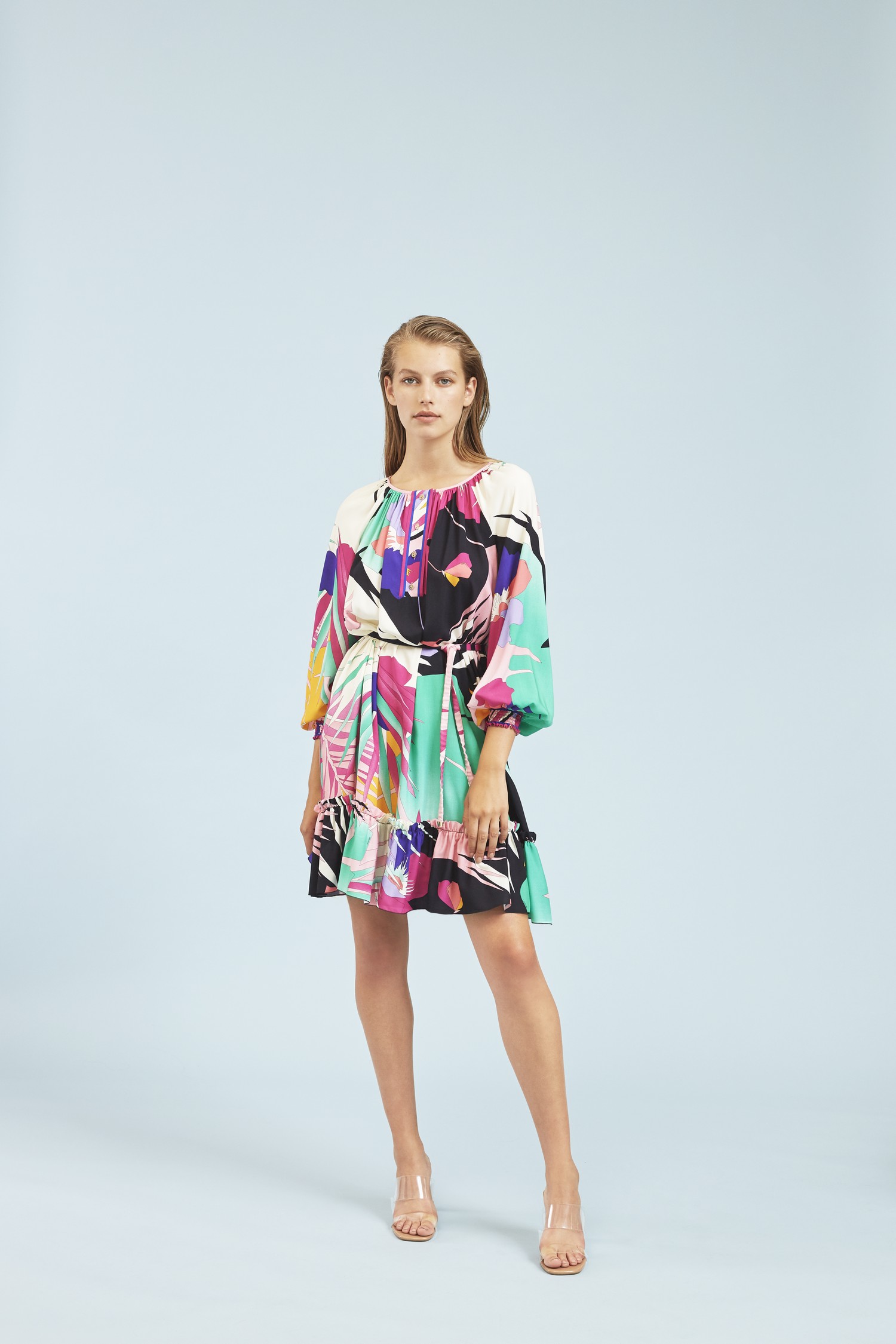 巧妙地將各種風格進行混搭。風格以及材質也較為豐富 – 有著金屬印花雙層編織與絲質針織,還有亮片印花及令人驚艷的粉筆色調圖騰。