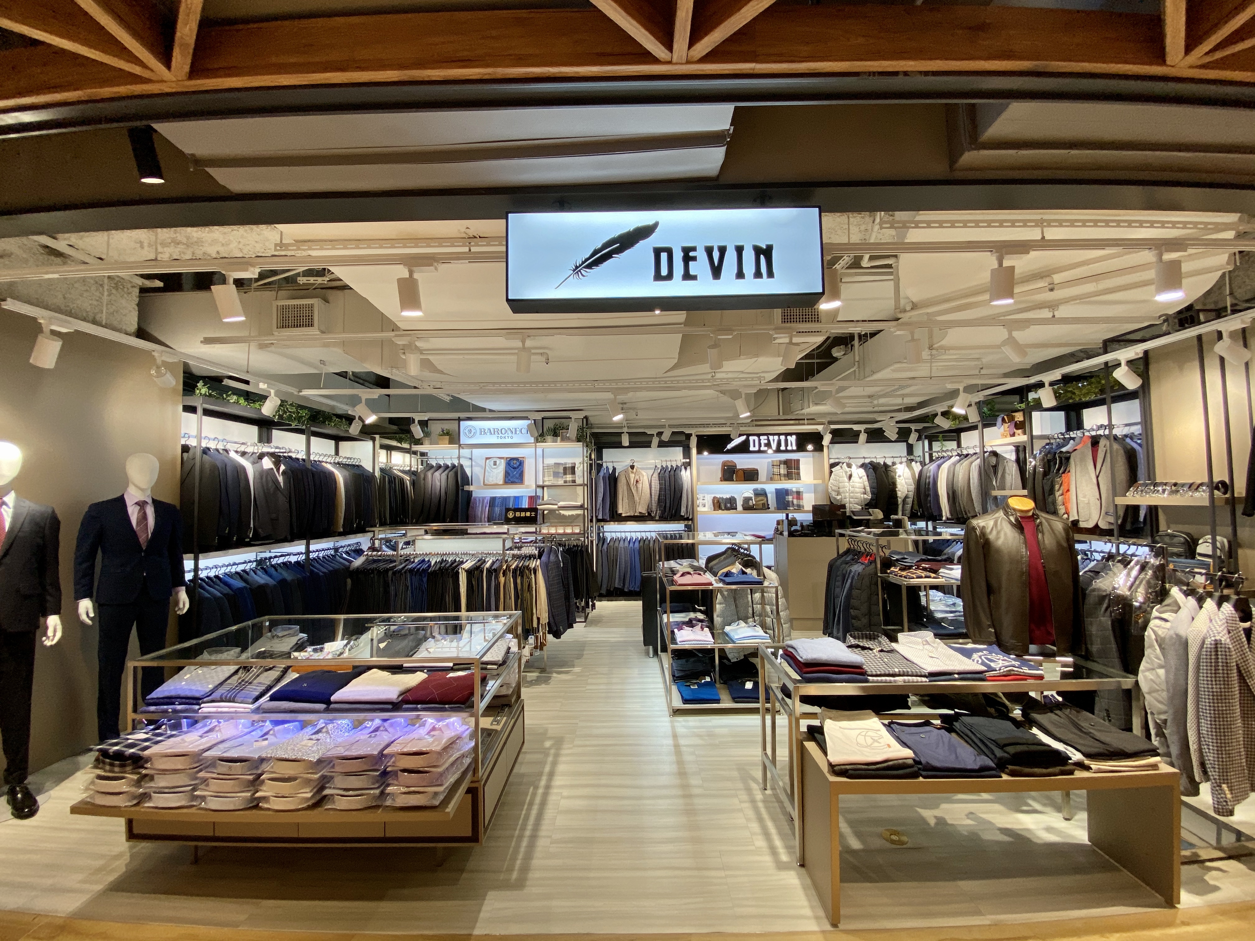 DEVIN提供各年齡層男士沈穩的商務時尚、鮮明的雅痞時尚及明朗的休閒舒適時尚,各種個性和品味的服飾、鞋、包、雜貨等,收集在同一家店內販售。