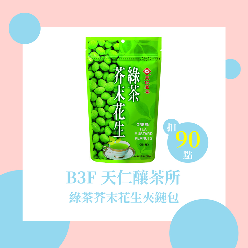 扣90點|天仁釀茶所 綠茶芥末花生夾鏈包