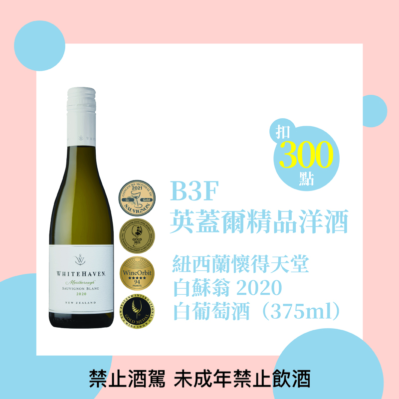 扣300點|英蓋爾精品洋酒 紐西蘭懷德天堂白蘇翁2020白葡萄酒(375ml)