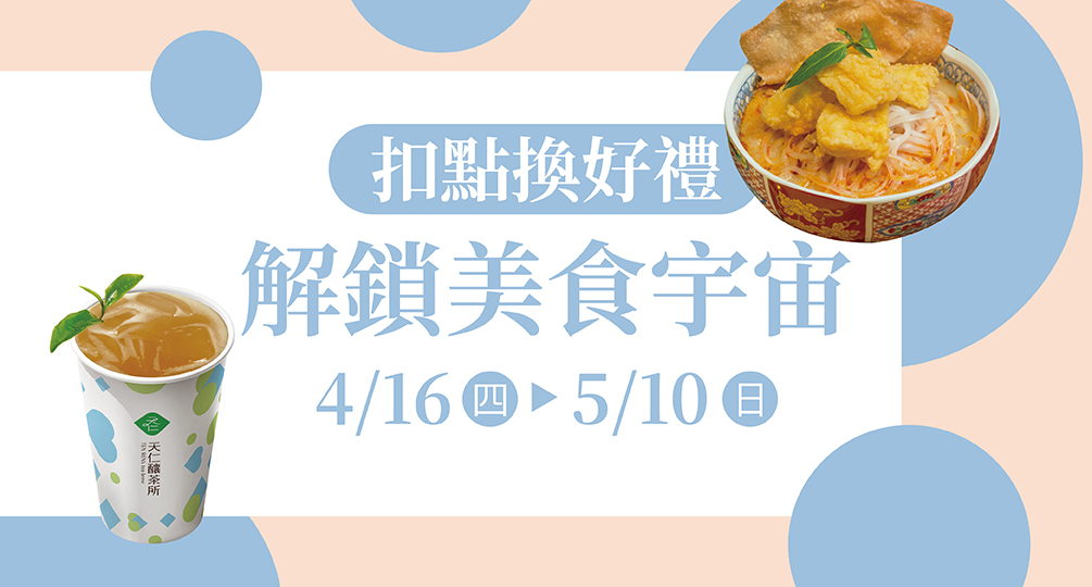 2026年開店慶獨家,扣指定會員點數即可兌換以下好禮~用點數解鎖美食宇宙,好吃好喝一站購足,心情好滿足!