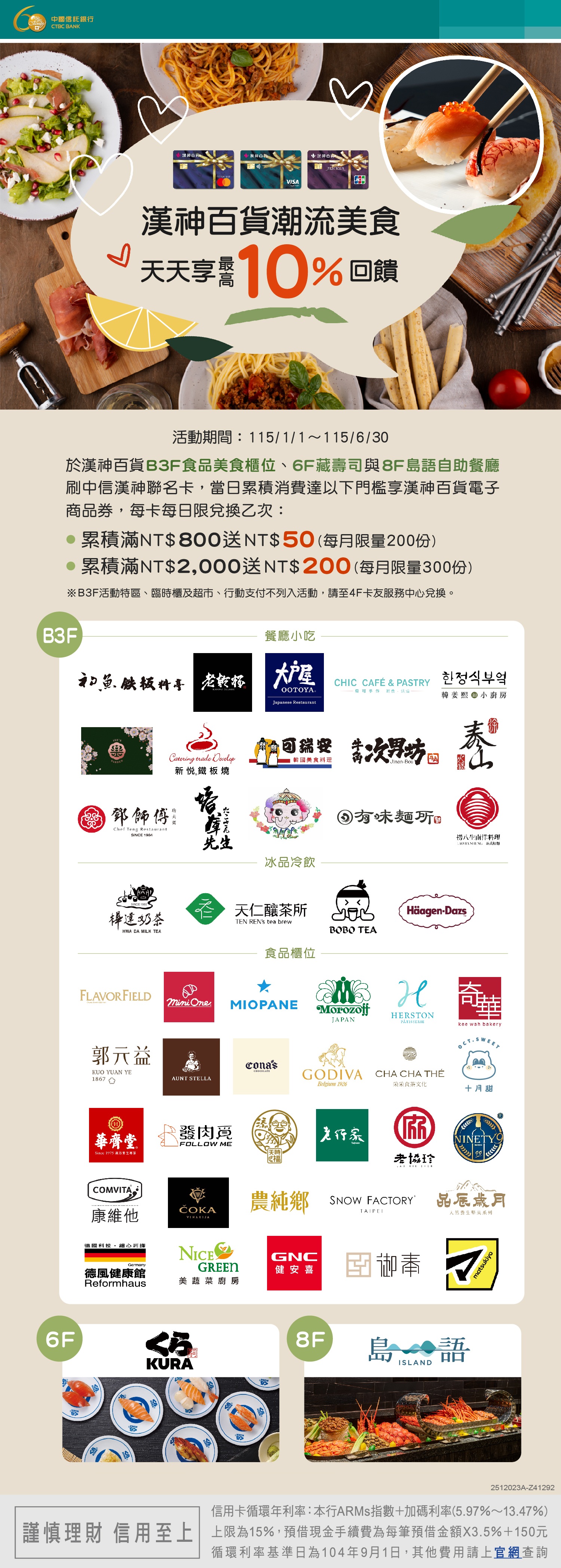 7.如遇不可抗力或不可歸責之事由,漢神百貨與中國信銀行得保留修改、變更、終止本活動及對本活動所有事宜作出最終解釋及決定之權利,相關事宜將依信用卡業務機構管理辦法第19條及相關規定辦理。