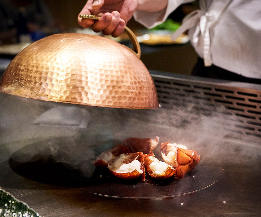 初魚鐵板燒,能品嚐到以各式不同手法所料理的當季新鮮食材,充滿變化與期待,滿足各種饕客喜好,完整體現おまかせ無菜單板前料理最原始的精神。